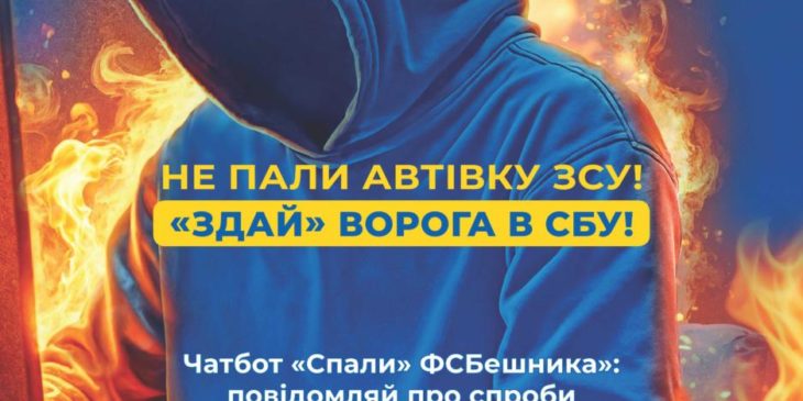 СБУ та Нацполіція знаходять усіх таких підпалювачів і мінерів на раз-два. Краще допоможи знищити ворога. Пиши в чатбот «Спали» ФСБешника» — t.me/spaly_fsb_bot. Не пали своїх! «Спали» ворога!